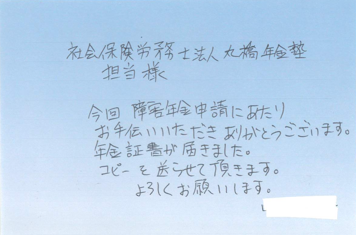 障害年金申請にあたりお手伝いいただきありがとうございました。